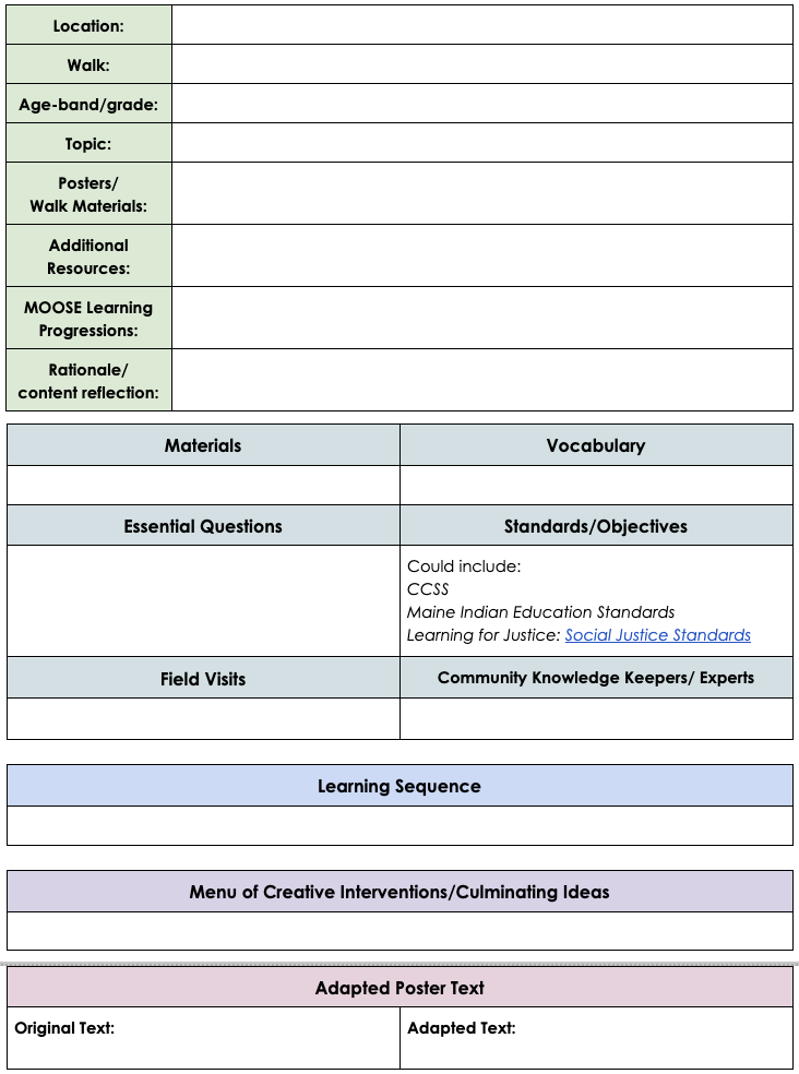 The lesson plan template is intended to be used in conversation with the WHERE archive, which contains place-based historical research, primary sources, maps, additional links and resources, and examples of creative, artistic engagement. When using the archive for lesson inspiration, you might focus your search by location, or by topic. The texts, posters, and images shared on the archive are open-source, and can be downloaded to revise and adapt for use in your classroom or learning space.